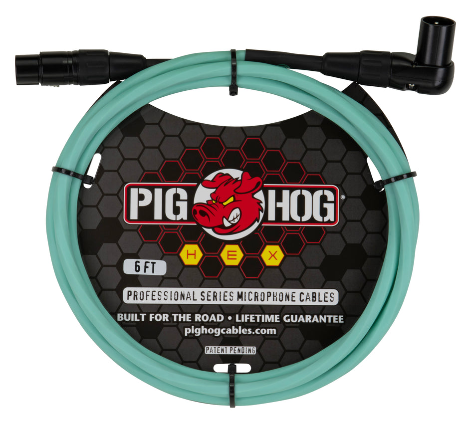 Pig Hog Hex Series Right Angle Mic Cable, 6ft - Seafoam Green